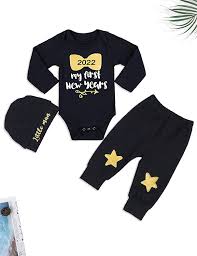 Shop online for tees tops hoodies dresses hats leggings and more. My First New Year Clothes Newborn Baby Boy New Year Outfit Strips Letter Print One Piece Romper Outfit Set. My First New Years Outfit 2022 Baby boy Clothes Gentleman White Long-Sleeve Star Carrier Pants hat 3-Piece Set.