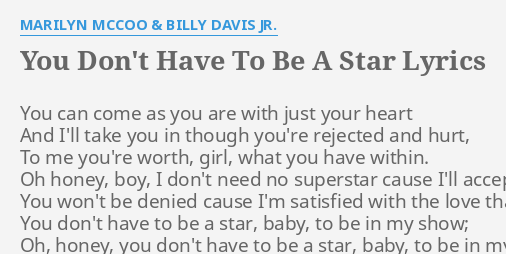Oh honey therell be no cheering from the crowds. You Dont Have to Be a Star To Be in My Show is a song by the husbandwife duo of Marilyn McCoo and Billy Davis Jr former members of the vocal group The 5th Dimension. You Dont Have To Be A Star Lyrics.